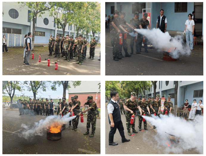 黄青松牵头组织新生消防演练,组建由支部党员肖万斌、邓俊、孙勇及入党积极分子陈煜构成的“实战演练指导团队”。团队演示灭火器使用要点,手把手指导新生逐一上手实操灭火,严格落实“人人过关”要求。“提、拔、握、压!注意站在上风向,对准火焰根部喷射!”现场实践氛围浓厚。