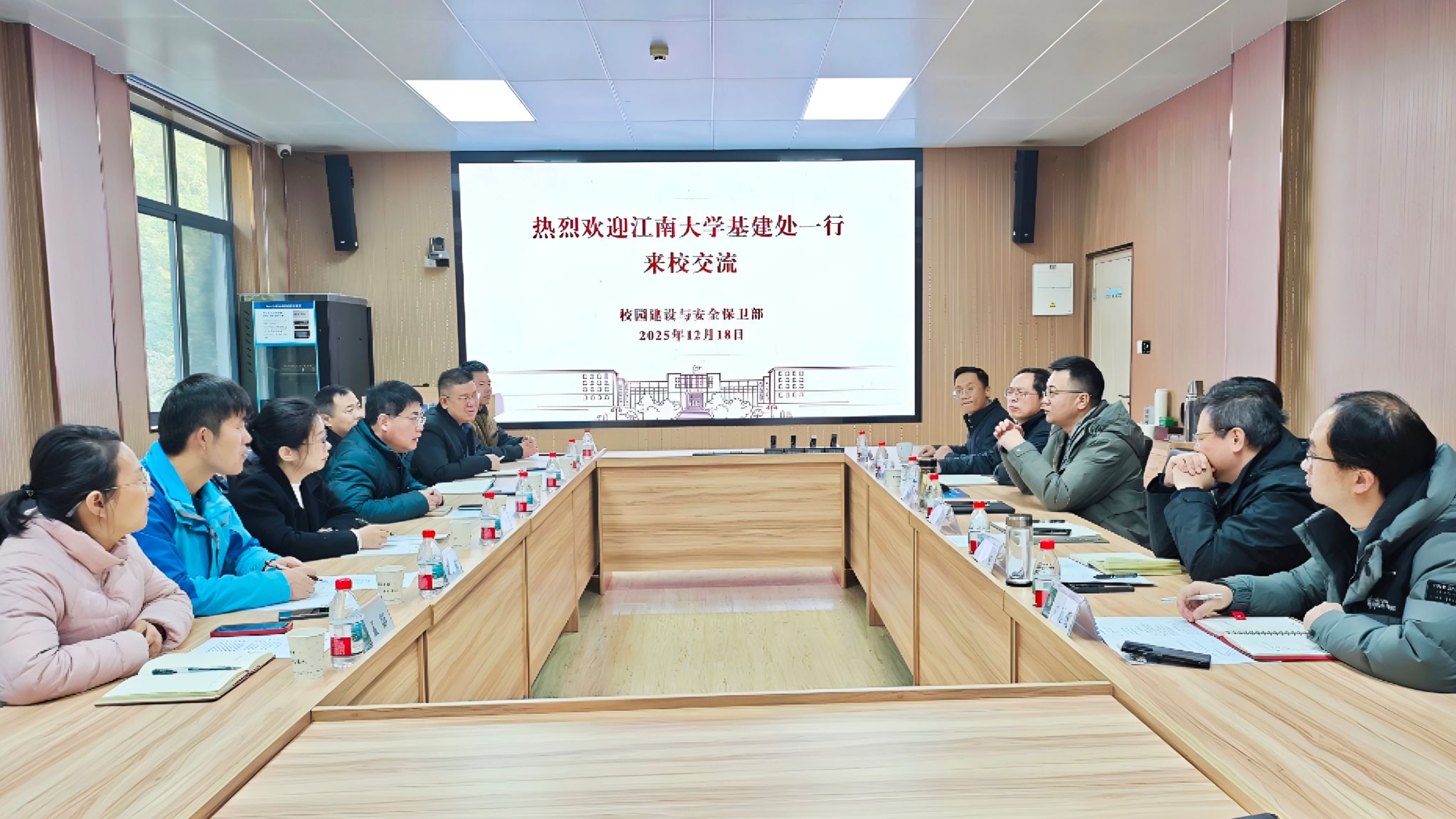 12 月 18 日上午,江南大学基建处处长方俊一行 7人来校交流,专题调研基本建设管理工作。双方围绕新校区建设等“两重”建设项目、EPC模式在校园建设项目中应用实践、基建信息化建设做法等问题进行了座谈交流。座谈会由建安部常务副部长、基建处处长李寅甲主持。