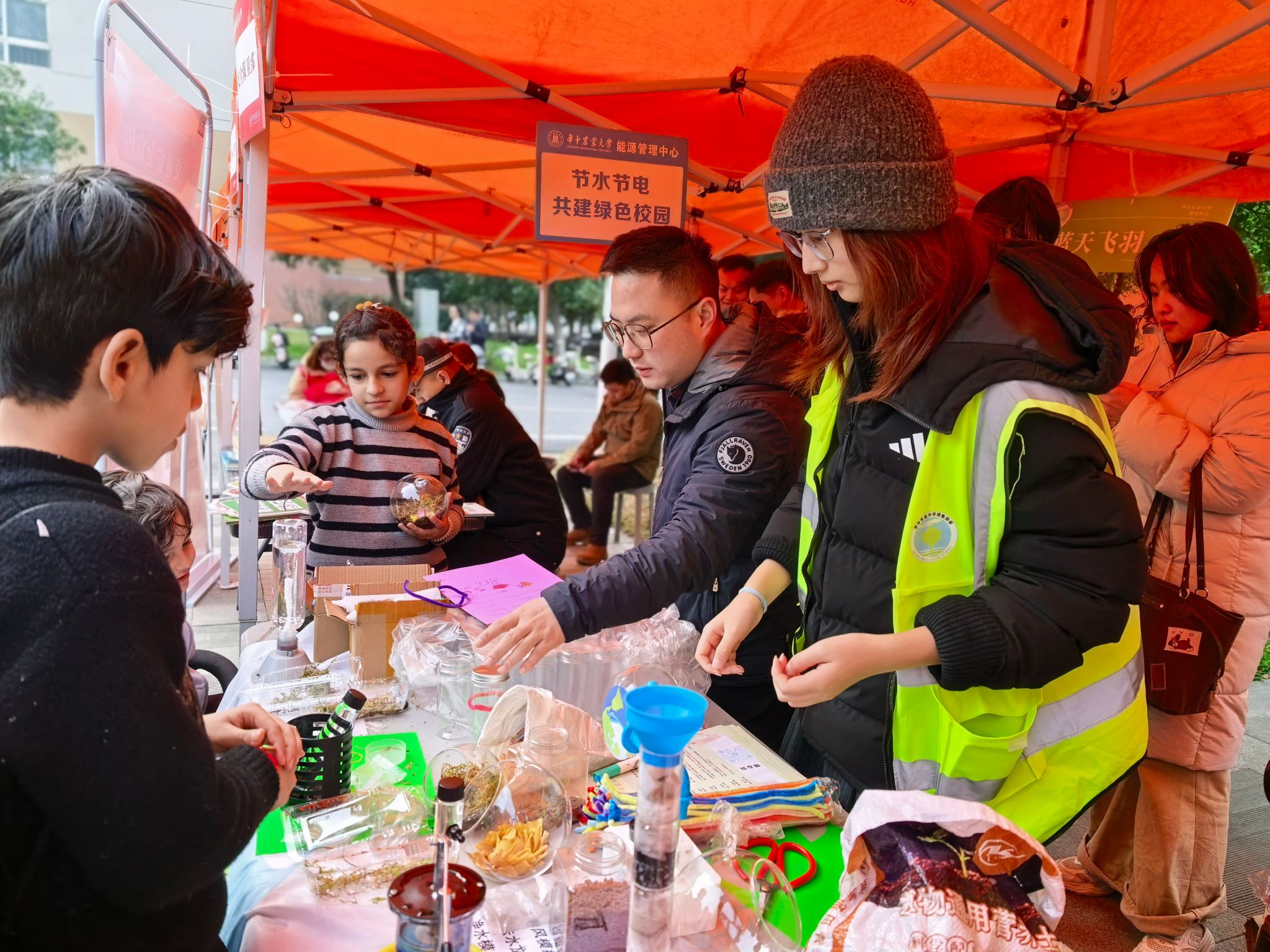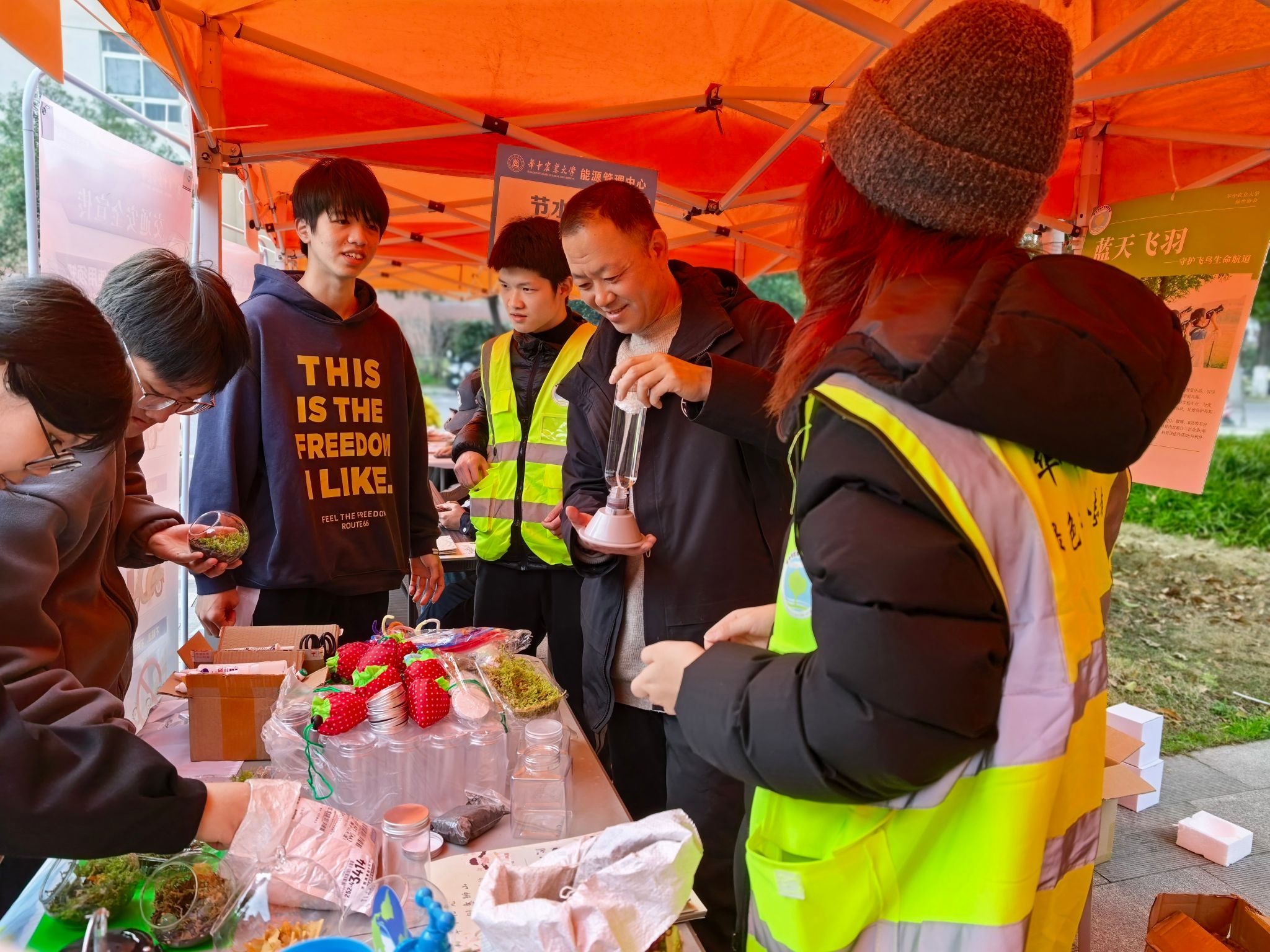 活动现场,支部党员志愿者们热情服务、耐心引导。在节水节能服务摊位,支部成员与师生亲切互动,共同参与节水实验、环保手工制作等体验活动;支部先锋示范岗党员吴凡带头示范,通过直观有趣的科普形式,向师生普及节约资源、低碳环保理念,营造了共建绿色校园的浓厚氛围。