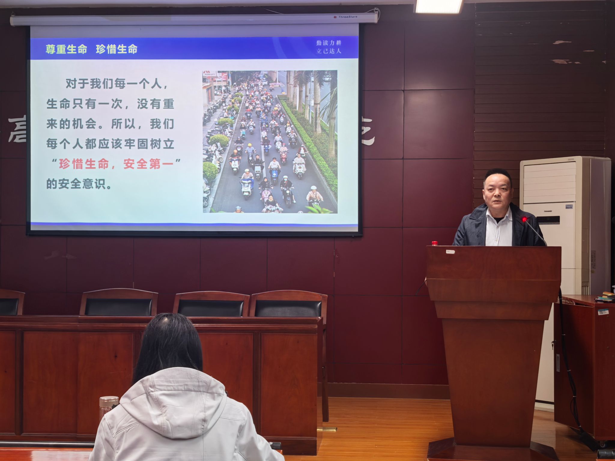 段德君以一组触目惊心的数据为开场,引出交通事故已成为除疾病外导致人类非正常死亡的重要原因。他谈到,这些事故背后,都是对交规的漠视和对生命的亵渎,每一位师生都不能抱有侥幸心理。报告中,他解读了最新交通法规的六大核心变化。对于校内骑行,他特别指出,全体师生骑行电动车必须佩戴头盔。